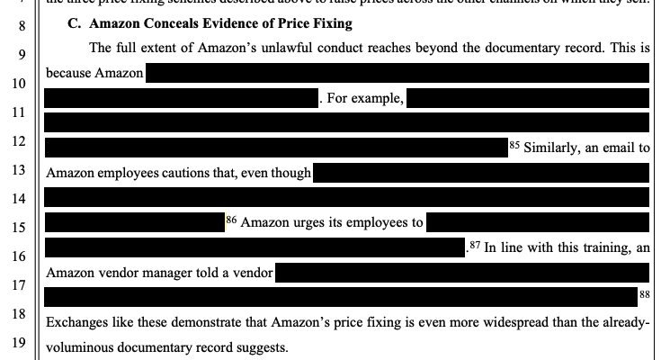 There’s one last observation about the complaint. Again, it’s redacted, but Bonta is hinting at Amazon’s internal process to hide what it is doing.