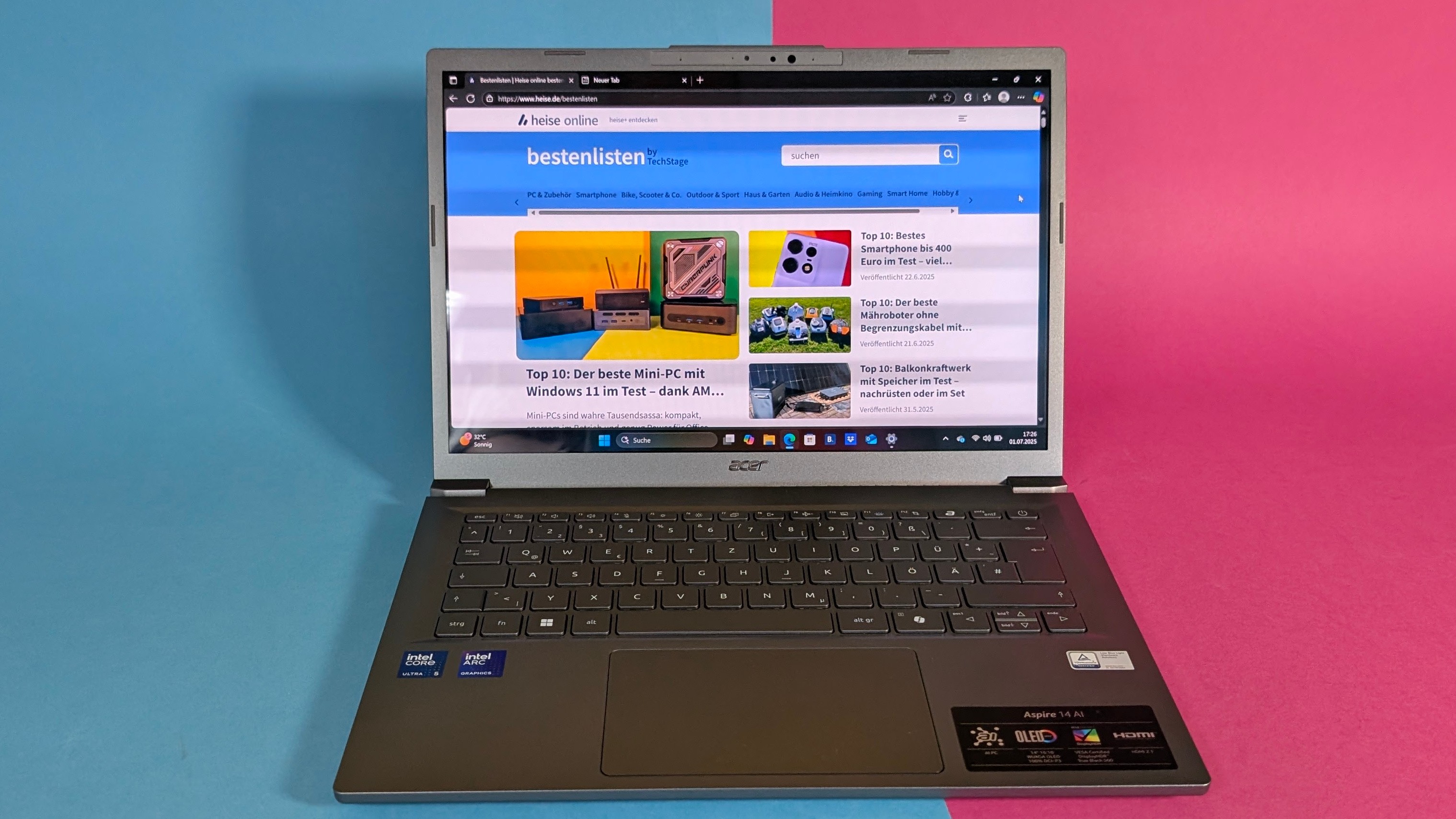 Mit dem Acer Aspire 14 AI OLED bekommt man zum aktuellen Bestpreis von 699 Euro bei Notebooksbilliger ein überaschend flottes Notebook mit Core Ultra 5 226V, das wir zuletzt getestet haben. Es bringt Intels neue Ultra-200-Prozessoren bereits in tiefere Preisregionen – ein klares Zeichen dafür, dass moderne KI-fähige Chips nicht mehr nur Premium-Geräten vorbehalten sind. Die integrierte Intel Arc Graphics 130V bietet zudem deutlich mehr Grafikleistung als frühere Intel-Lösungen, was leichtes Gaming ermöglicht. Was uns sonst aufgefallen ist, zeigt unser Testbericht im Detail.
