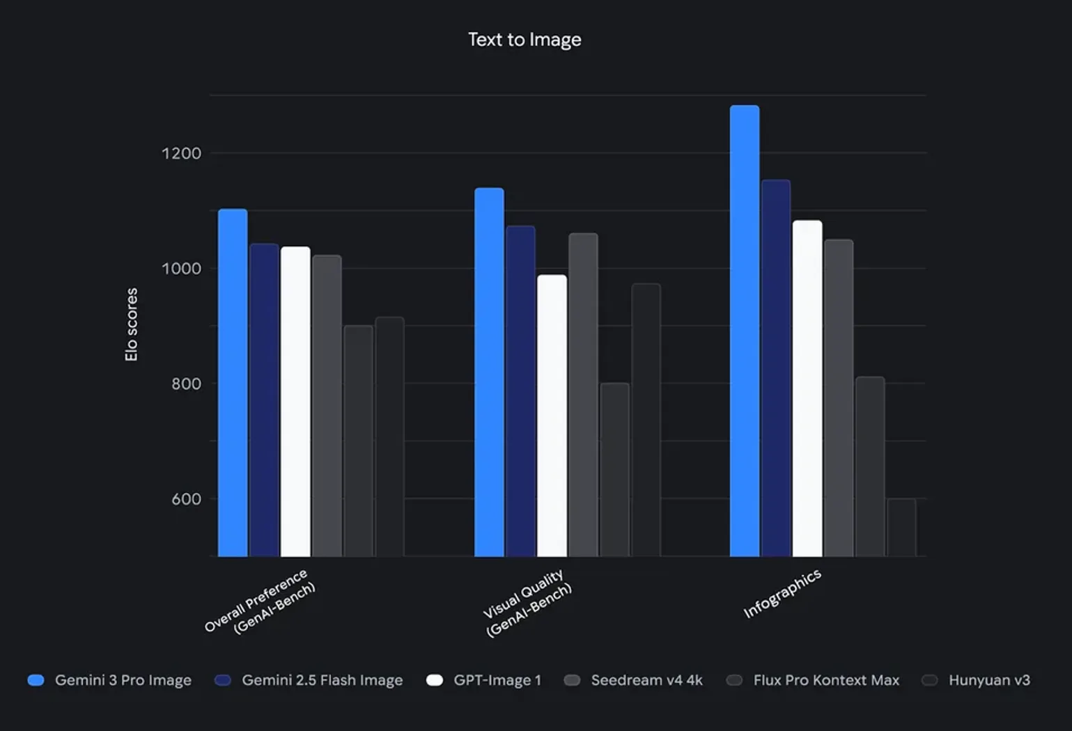 In Tests, welche generierten Bilder Nutzer bevorzugen, liegt Nano Bana Pro deutlich vor dem eigenen Vorgänger und der Konkurrenz. | Bild: GoogleTextverarbeitung in Bildern verbessert