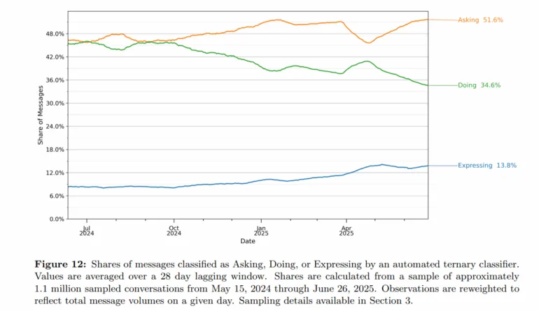 Bild: OpenAIEntscheidungsunterstützung prägt ChatGPT – “Asking” nimmt zu, “Doing” ab