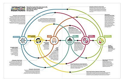 Megatrends are trends that have effects on a global scale. Some of the current megatrends relate to global threats. Megatrends strongly influence different spheres of life in many countries... Wikipedia