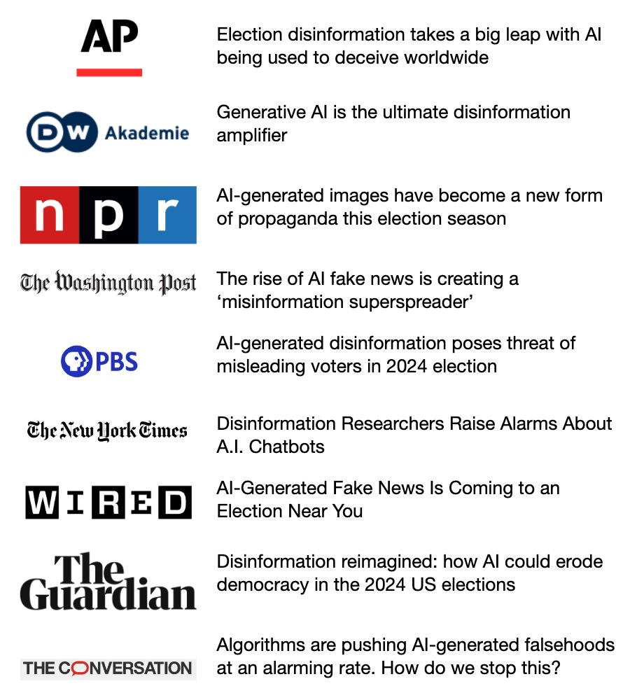 AI-generated misinformation was one of the top concerns during the 2024 U.S. presidential election. In January 2024, the World Economic Forum claimed that “misinformation and disinformation is the most severe short-term risk the world faces” and that “AI is amplifying manipulated and distorted information that could destabilize societies.” News headlines about elections in 2024 tell a similar story: